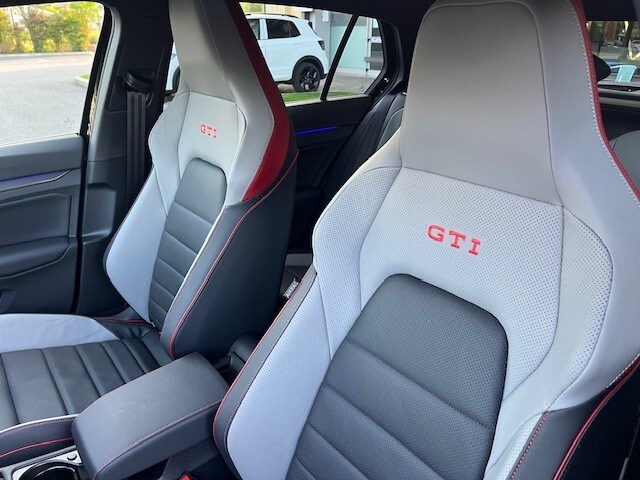 - Sedili GTI con poggiatesta integrati con cuciture a contrasto rosse