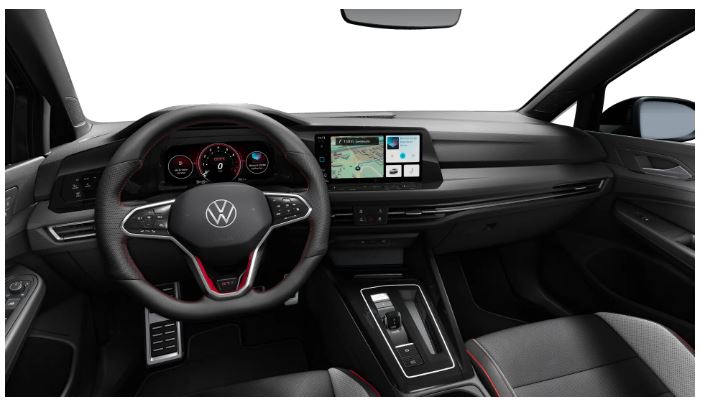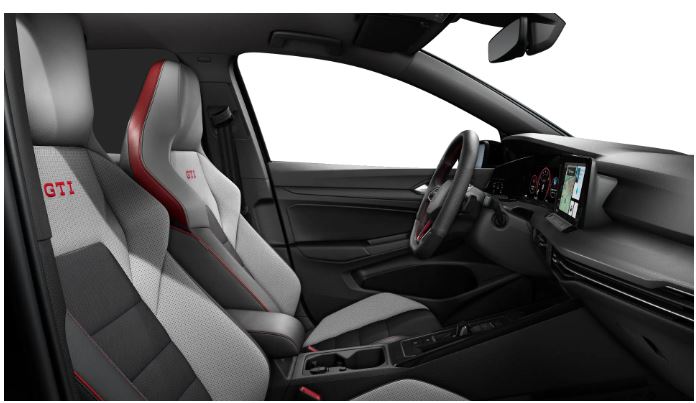 - Sedili GTI con poggiatesta integrati con cuciture a contrasto rosse